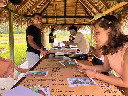 Jóvenes participando del proceso de formación en turismo comunitario en la Perla Amazónica, Putumayo.
