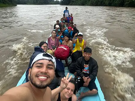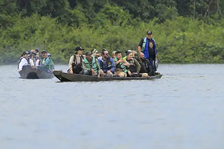 Traslado en río de cooperantes y otros aliados en visita a proyectos ecoturísticos del Raudal del Guayabero en Guaviare. Proyecto Naturaleza para la Paz.