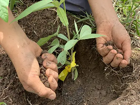 Proceso de siembra de plantas de café como parte del proceso de fortalecimiento a organizaciones y comunidades en actividades agrícolas.