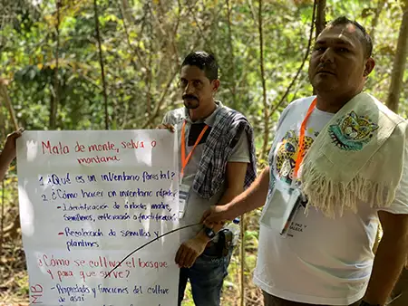Escuela de campo a asociaciones productoras de cacao para mejorar sus prácticas agrícolas.