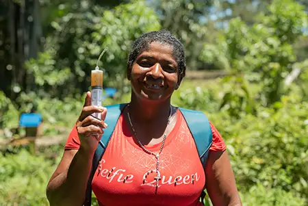 Mujer del proyecto de miel de la zona de la reserva campesina Perla Amazónica parte del proyecto Naturaleza para la Paz.