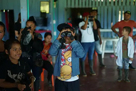 Avistamiento de aves, como parte del proceso de turismo comunitario en la reserva campesina de la Perla Amazónica.