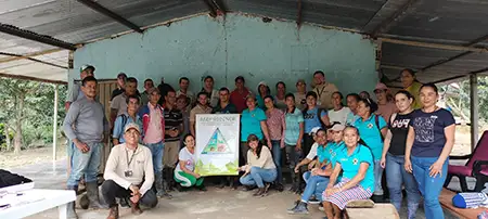 Asociación participante del proyecto Estrategia integral participativa con enfoque étnico y de género para la reactivación económica y productiva de la cadena de cacao en la Subregión Catatumbo en una Escuela de campo para aprender a mejorar las prácticas agrícolas de cultivo de cacao.