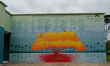 Mural en memoria de las víctimas del conflicto en el departamento de Arauca. Busca conocer las implicaciones de la desaparición forzada, contribuyendo a la conciencia y preservación histórica.