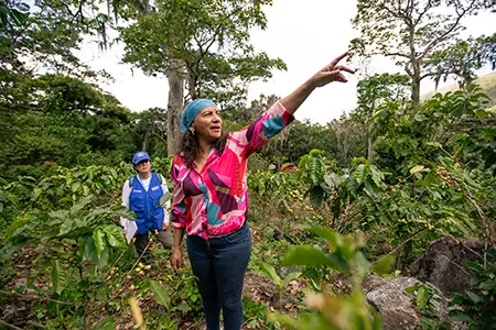 Beneficiaria del proyecto de fortalecimiento a caficultores en un paisaje de la zona de Mesetas en el departamento del Meta.